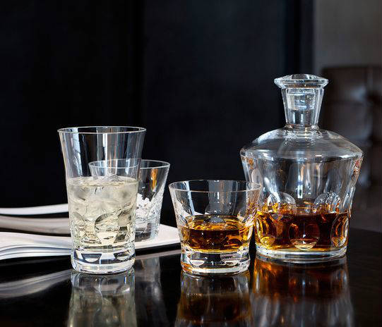 BELUGA HIGHBALL CRYSTAL BACCARAT, Be it single malt or cask strength, first-rate whiskey merits the finery of a Baccarat highball. The lovely circular motif at the base of the Beluga highball glass creates a dappled effect that makes the experience of drinking all the more multifaceted. The Beluga Whiskey Decanter is a perfect complement to create a perfect whiskey bar set.